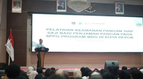 Depok, jarinusa.id – Wakil Wali Kota Depok, Chandra Rahmansyah, menghadiri kegiatan Pelatihan Keamanan Pangan Siap Saji bagi Penjamah Pangan pada Satuan Pelayanan Pemenuhan Gizi (SPPG) Program Makan Bergizi Gratis (MBG). Kegiatan tersebut diselenggarakan oleh Dinas Kesehatan (Dinkes) Kota Depok di Aula Serbaguna Gedung Dibaleka 2, Balai Kota Depok, Selasa (27/1/2026).